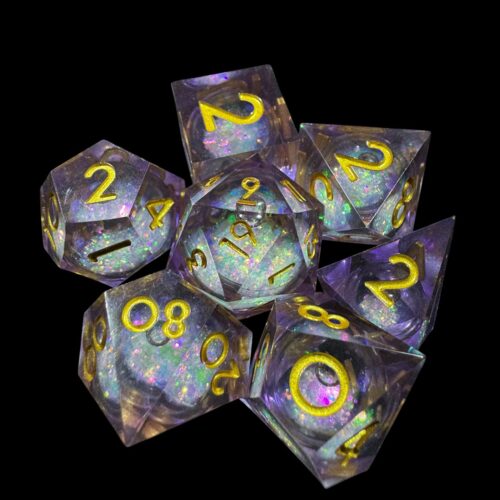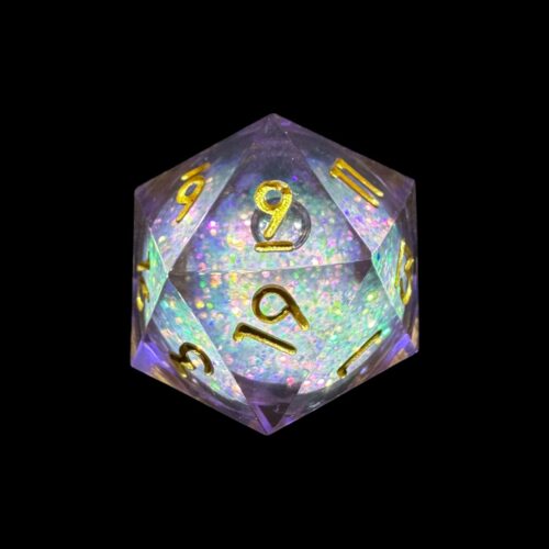 Purple transparent sharp edge dice with mobile purple draconic eye