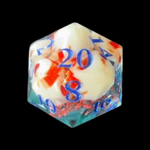 Red+light blue transparent D20 with moving blue draconic eye (33mm)
