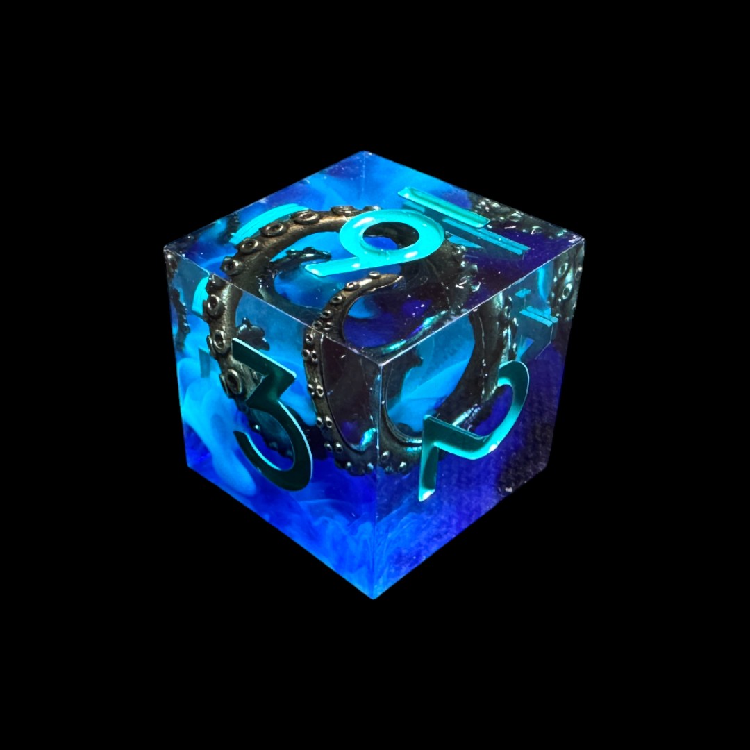 Transparent light blue sharp edge dice with skulls (blue no.) (Copia) (Copia)