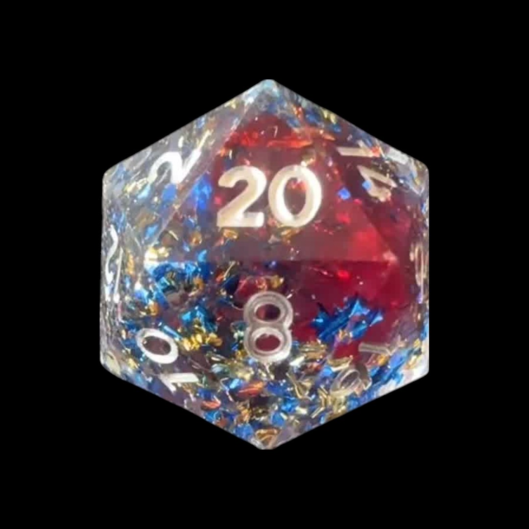 With a refined design and a color palette shifting between red, blue, and gold, these dice evoke the depth of space and the mystery of distant nebulae.