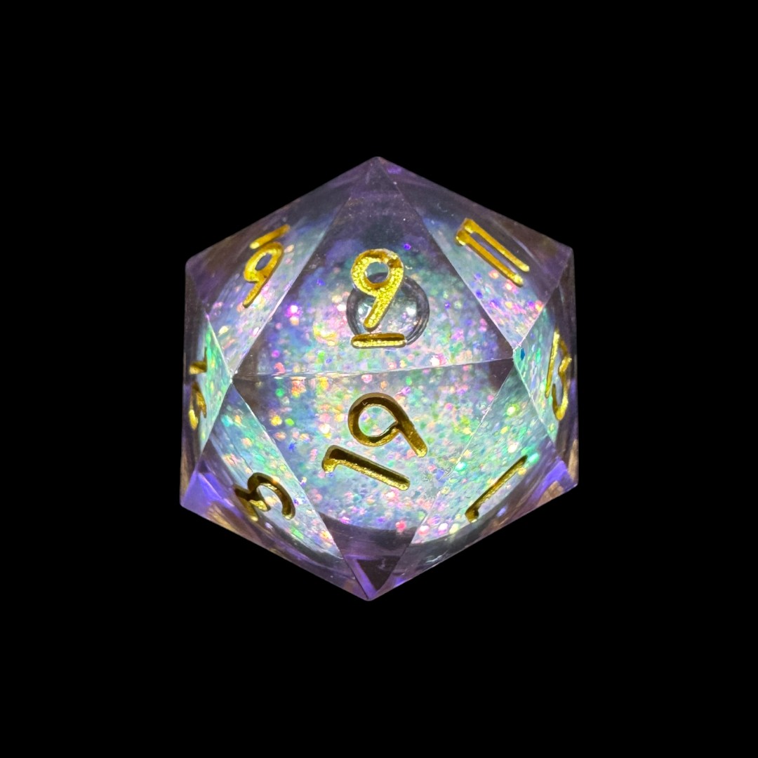 Crafted from high-quality translucent materials, these dice offer a unique visual experience: the internal liquid allows the glitter to float and dance as the die moves, evoking the image of an expanding galaxy, stardust, or pure magical energy. The dice remain precisely balanced, ensuring fair rolls without compromising their stunning aesthetic.