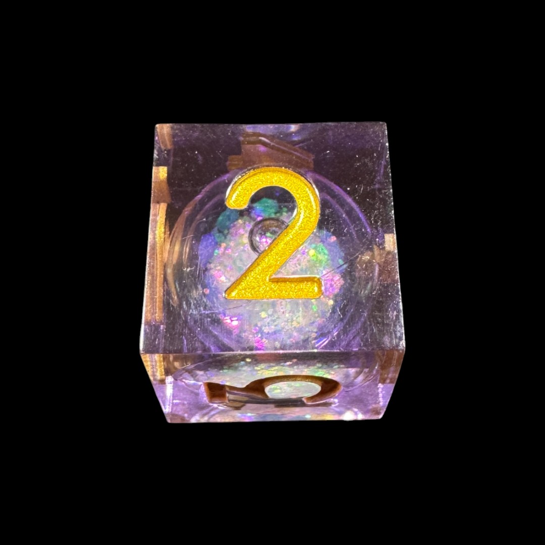 Purple transparent sharp edge dice with liquid