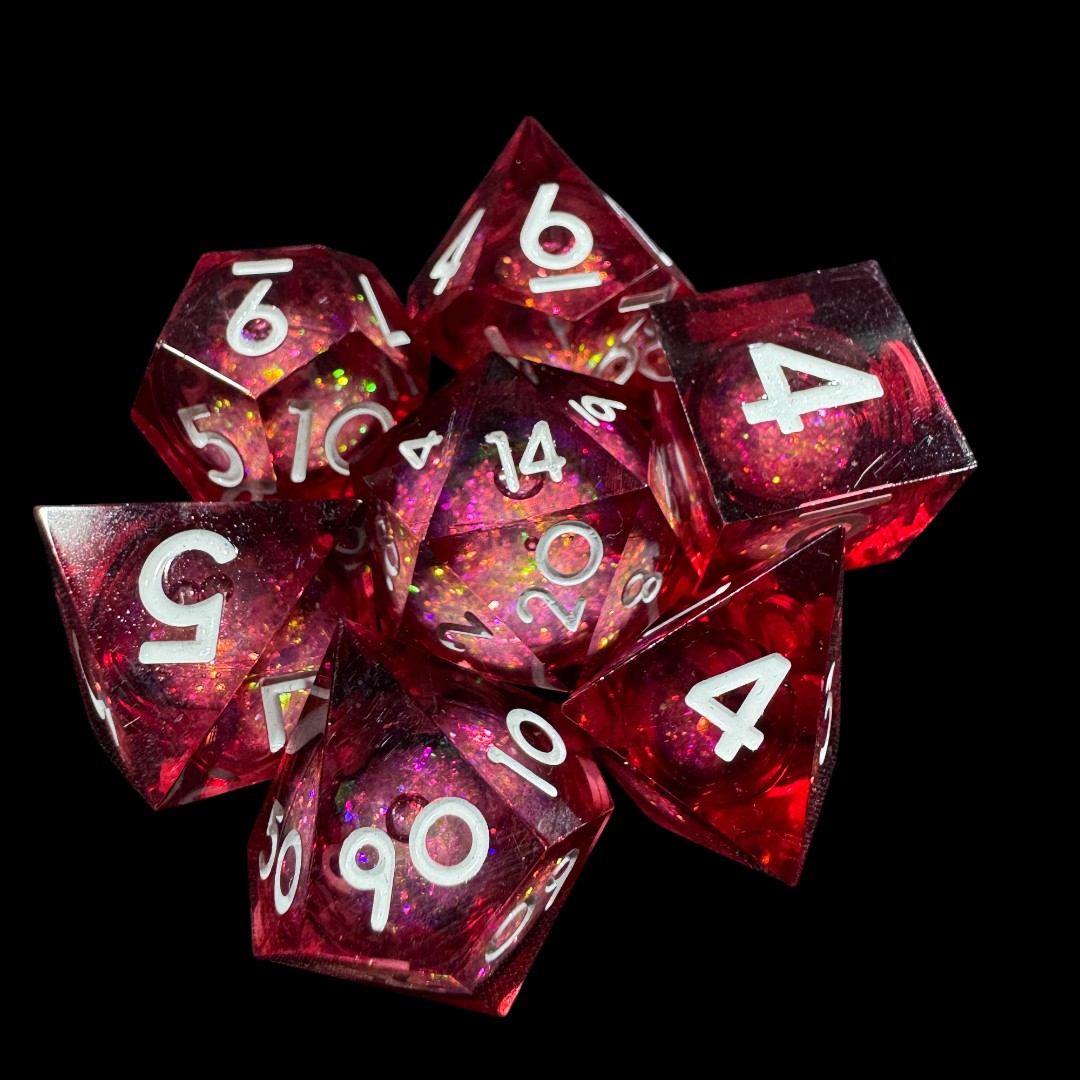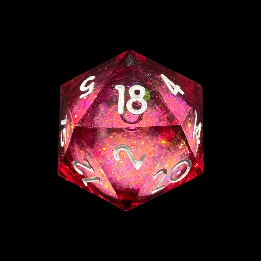 Made from high-quality translucent materials, these dice offer a unique visual play: the liquid inside allows the glitter to float and dance as the die moves, evoking the image of an expanding galaxy, stardust or pure magical energy. The balance remains precise, ensuring the fairness of each roll without compromising aesthetics.