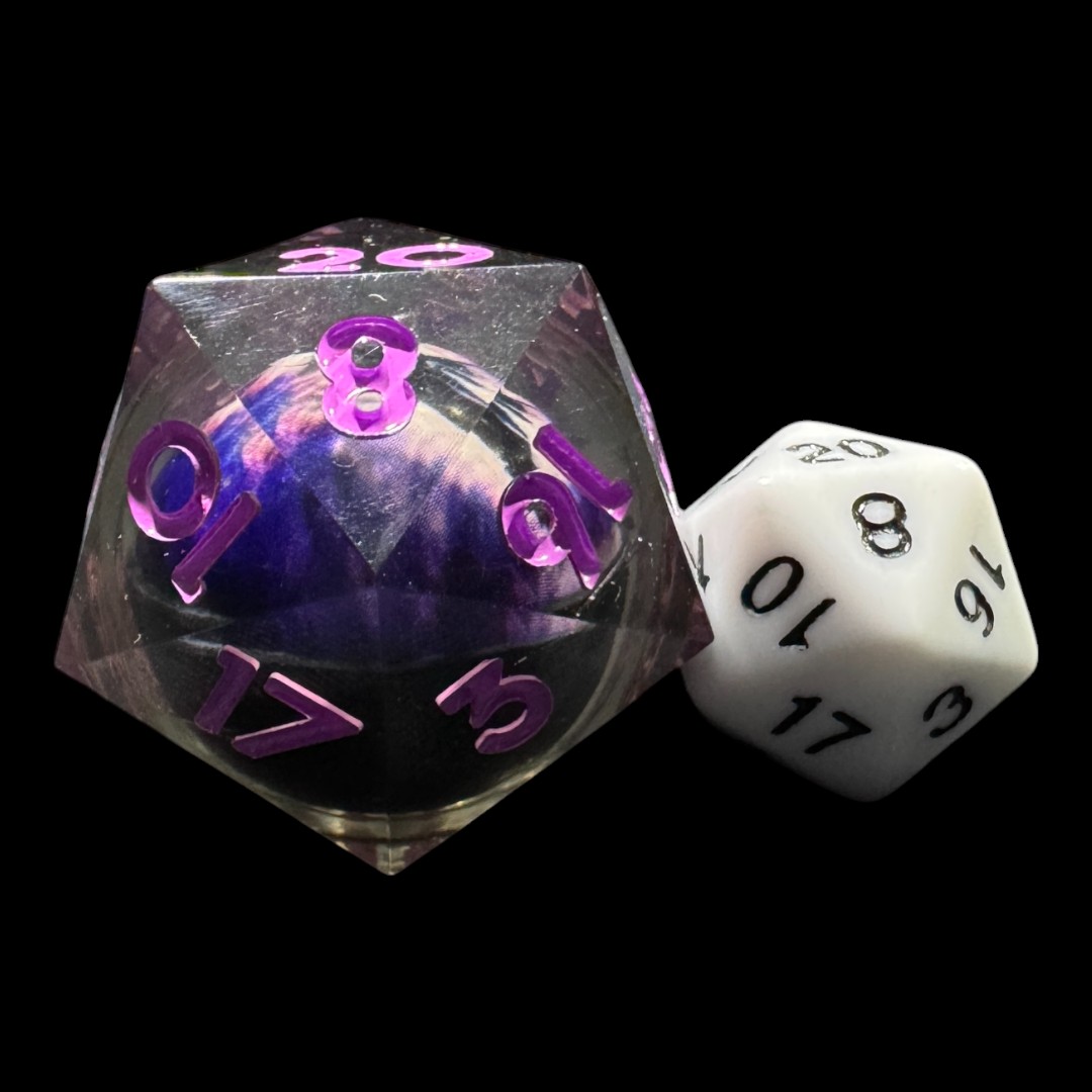 Black transparent D20 with mobile purple draconic eye (33mm)