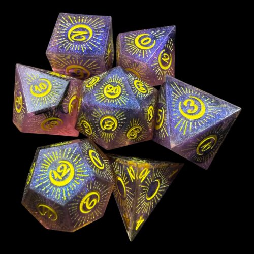 Dadi spigolo vivo viola lunari (no. gialli)