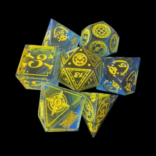 Dadi spigolo vivo blu lunari (no. gialli)