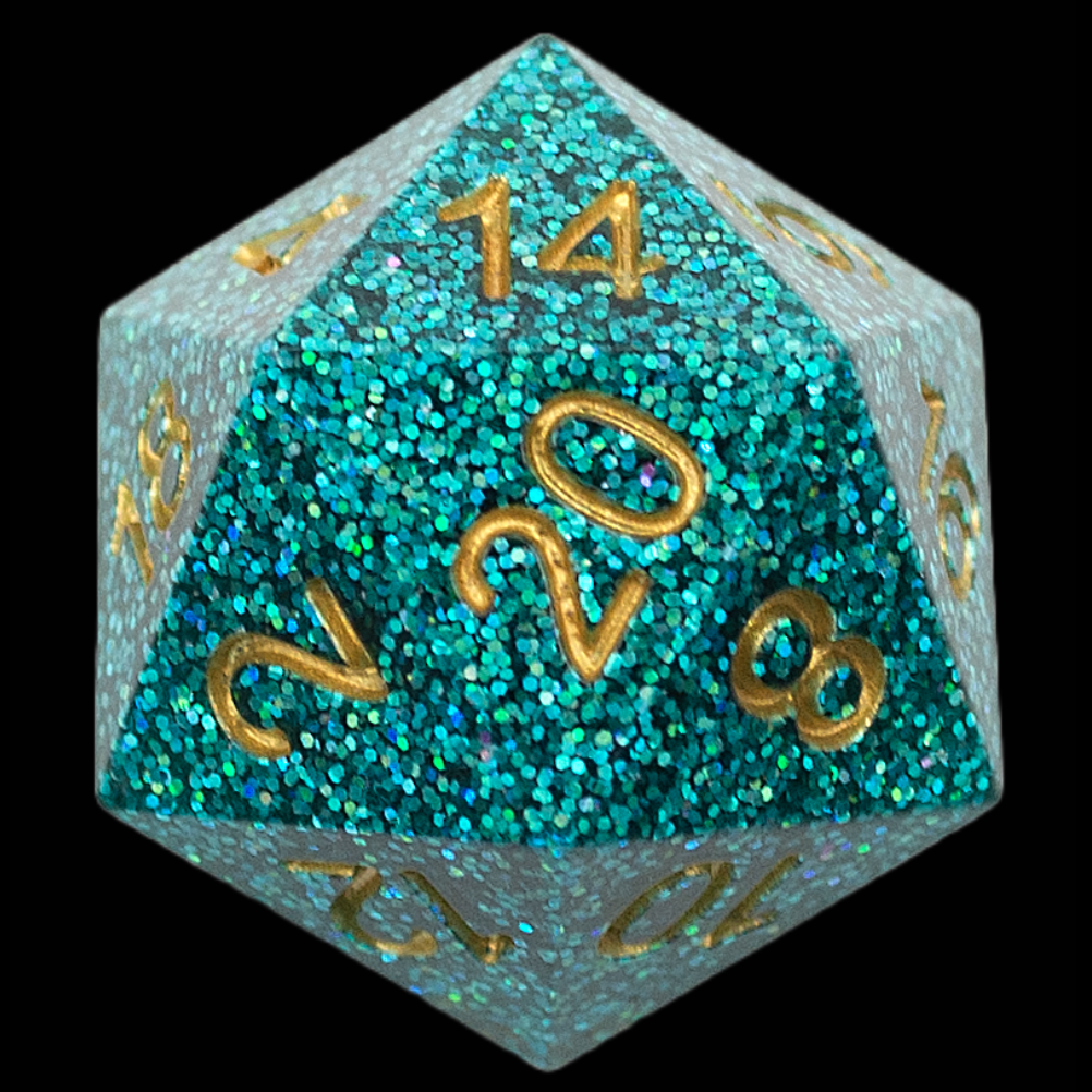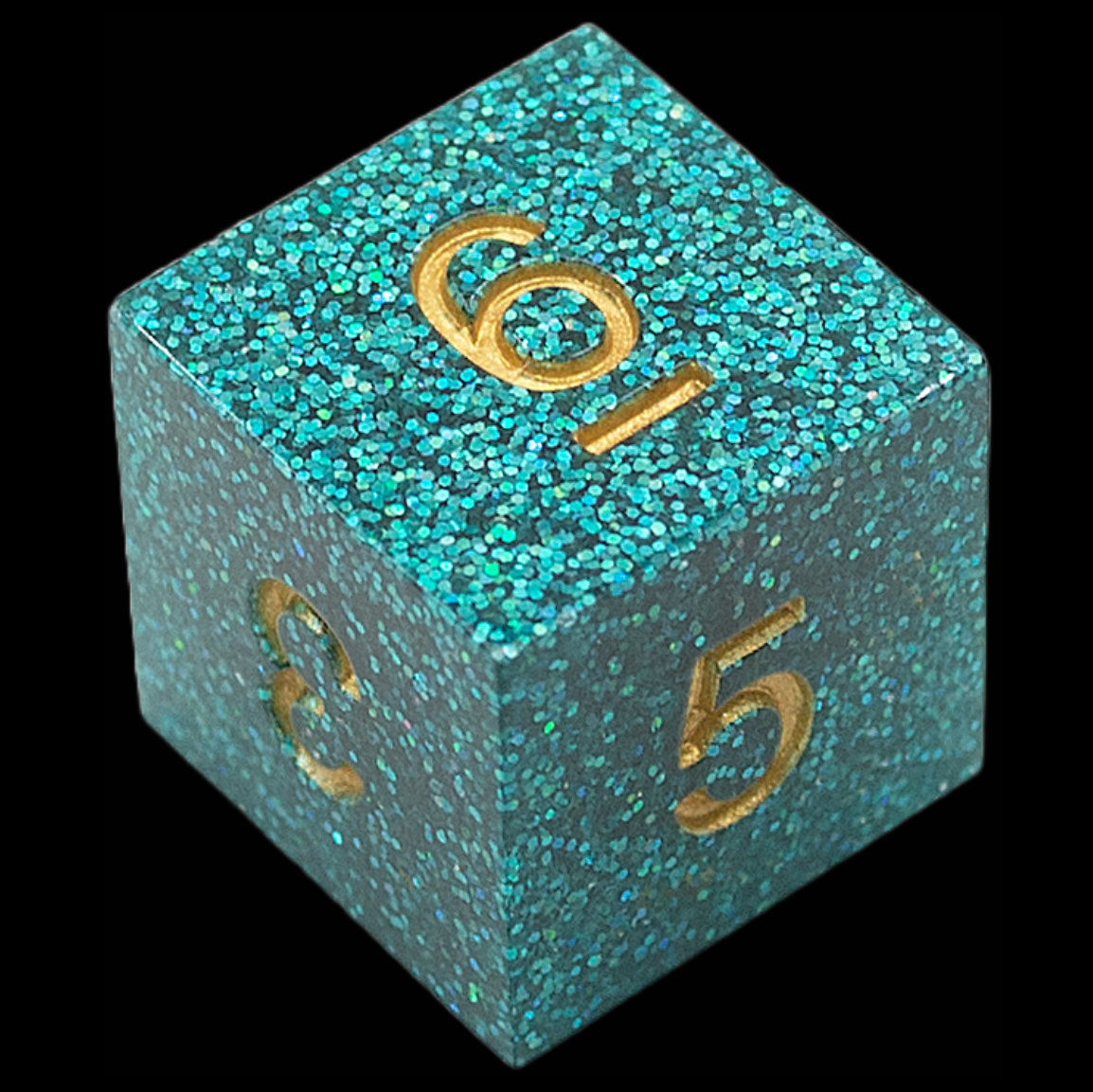 Dadi spigolo vivo glitterato turchese (nr. oro)