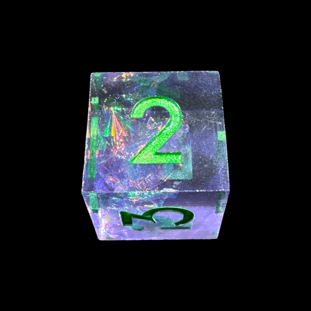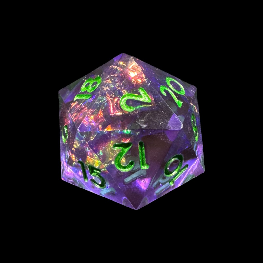 Dadi spigolo vivo viola olografico (no. verdi)