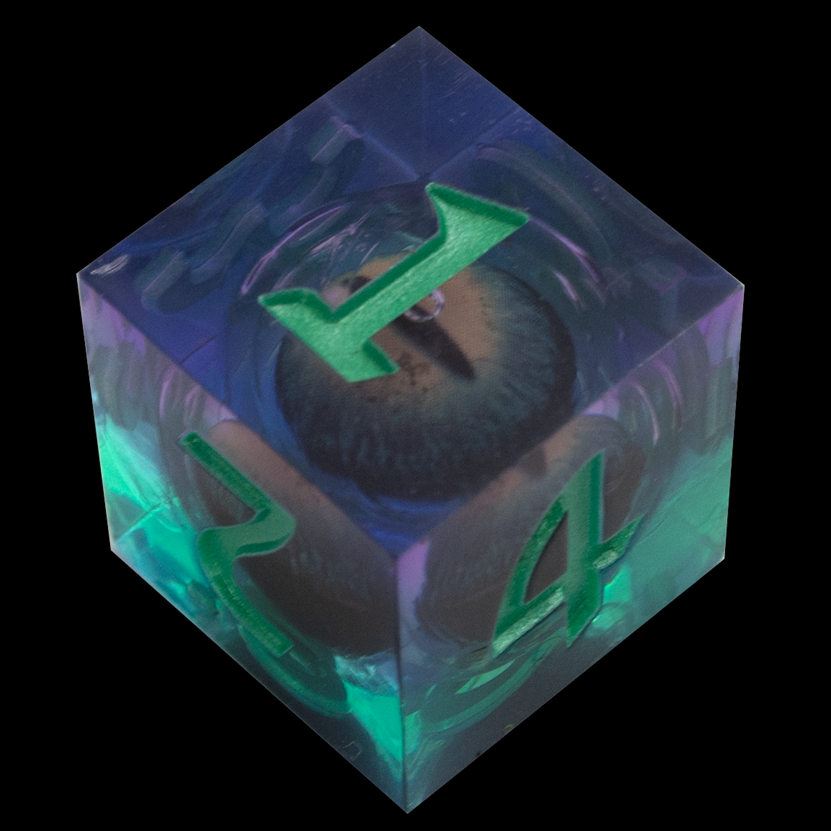 Dadi spigolo vivo verde+viola con occhio draconico verde mobile